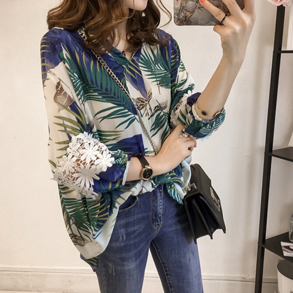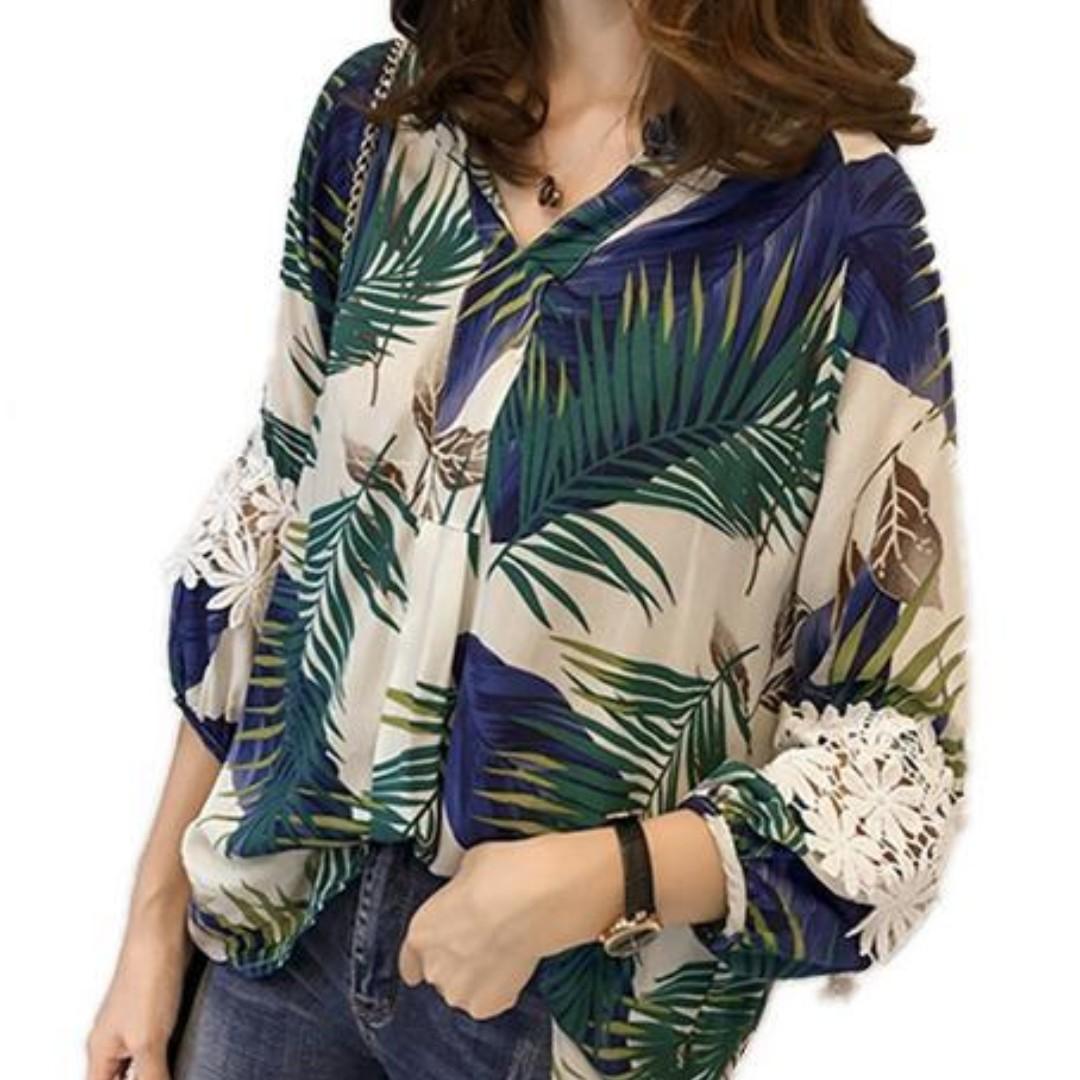 Ladies Plus Size Hawaii Leaves Long Sleeve Shirt Shopee Malaysia